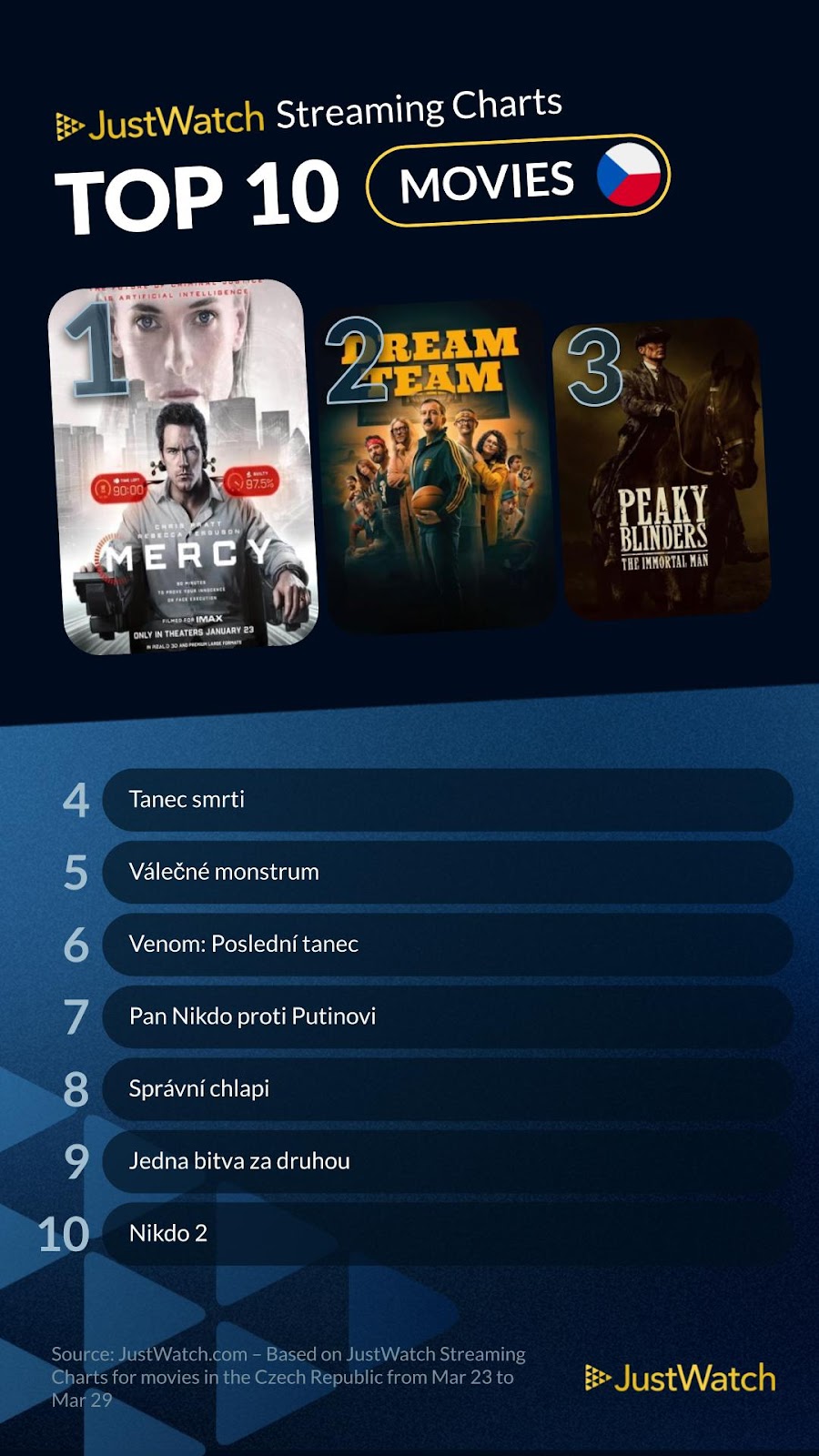 Jste-li zvědaví, co v Apple TV táhne nejvíce, tak níže najdete seznam 10 aktuálně divácky nejsledovanějšího obsahu v platformě týkající se seriálů i filmů. Pokud jde o celkové žebříčky VOD z minulého týdne, které pro ČR sestavil server JustWatch https://www.justwatch.com/, tak v nich Apple nemá titul žádný.