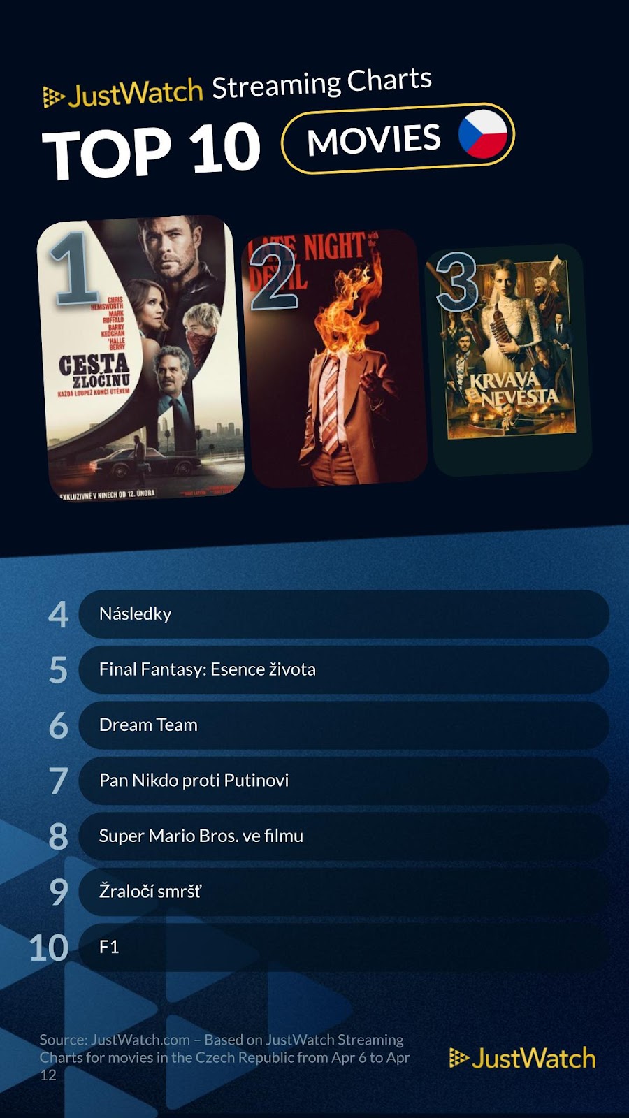 Jste-li zvědaví, co v Apple TV táhne nejvíce, tak níže najdete seznam 10 aktuálně divácky nejsledovanějšího obsahu v platformě týkající se seriálů i filmů. Pokud jde o celkové žebříčky VOD z minulého týdne, které pro ČR sestavil server JustWatch https://www.justwatch.com/, tak v nich má Apple mezi filmy hned dva zářezy: Následky na 4. místě a F1 na 10. místě. V seriálech ale nebodoval ničím.