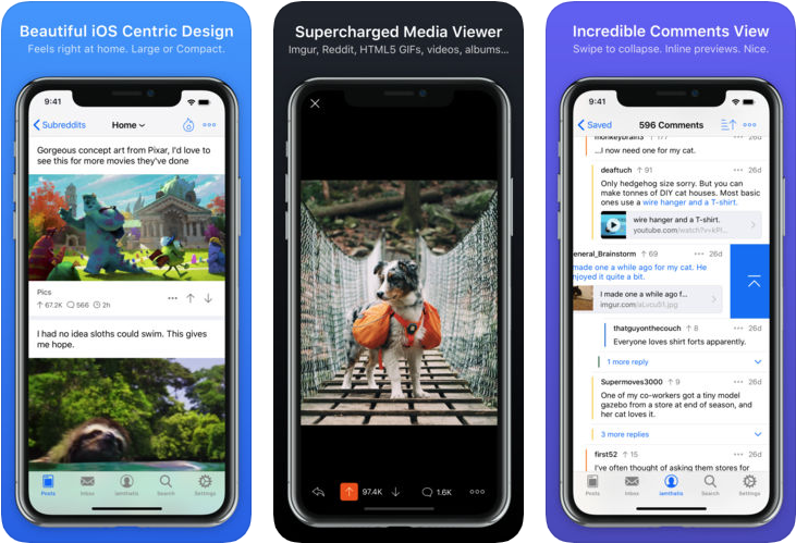 Apollo for Reddit je aplikace, usnadňující používání populárního diskusního serveru. Nabízí podporu ovládání za pomoci gest, je vybavena vestavěným mediálním prohlížečem, umožňuje filtrování a blokaci a podporuje funkci 3D Touch a zabezpečení za pomoci číselného kódu, Touch ID či Face ID.