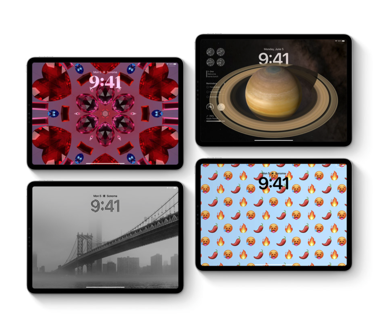 Operační systém iPadOS 17 nabízí ještě lepší možnosti, co se týče přizpůsobení zamčené obrazovky. K dispozici nyní budete mít kromě jiného také pestrou paletu úchvatných tapet, kterými si můžete vyzdobit váš jablečný tablet. Tapety ve formátu Live Photo navíc získávají nový efekt, díky kterému budou ještě dynamičtější.