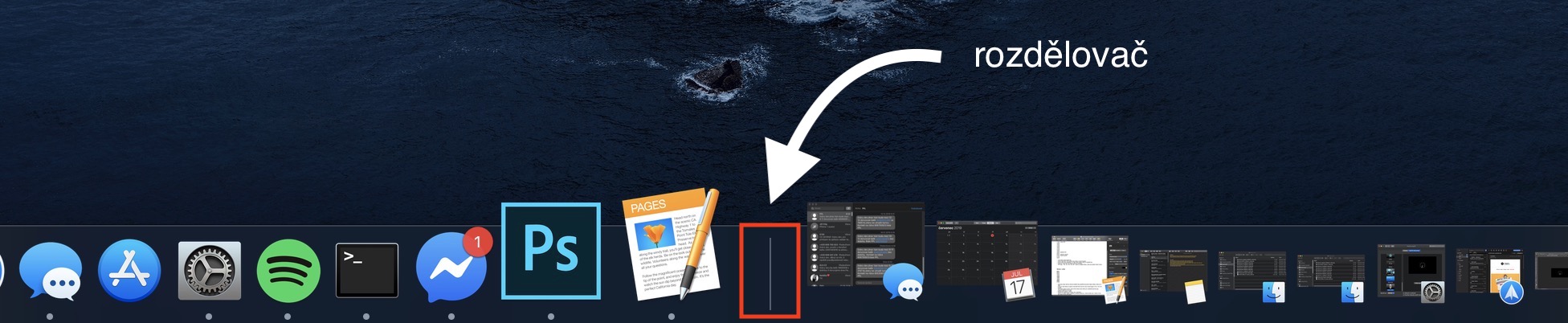 - K otevření menu Docku držte klávesu Control a klikněte na rozdělovač Docku (popřípadě na něj klikněte pravým tlačítkem)
