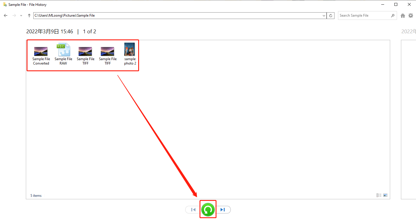 Pojďme si znovu projít celý proces obnovy fotek s funkcí Historie souborů: