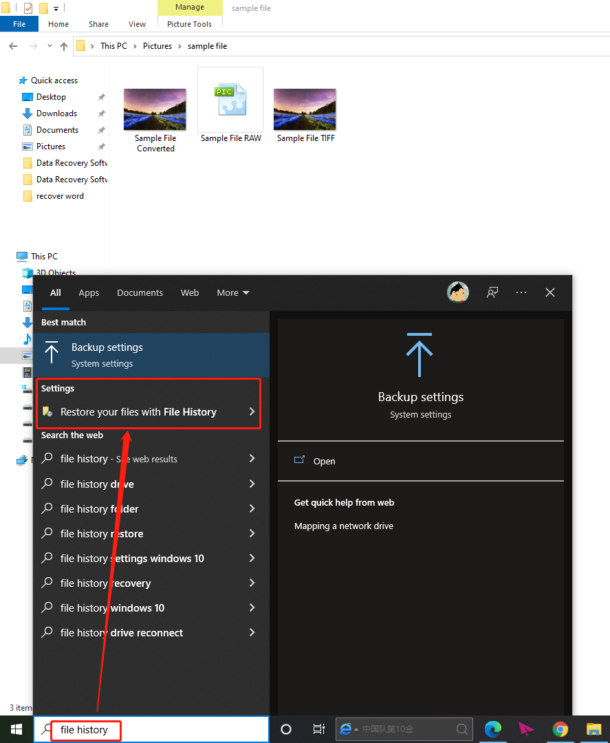 - Obnova permanentně odstraněných snímků přes funkci Historie souboru ve Windows
