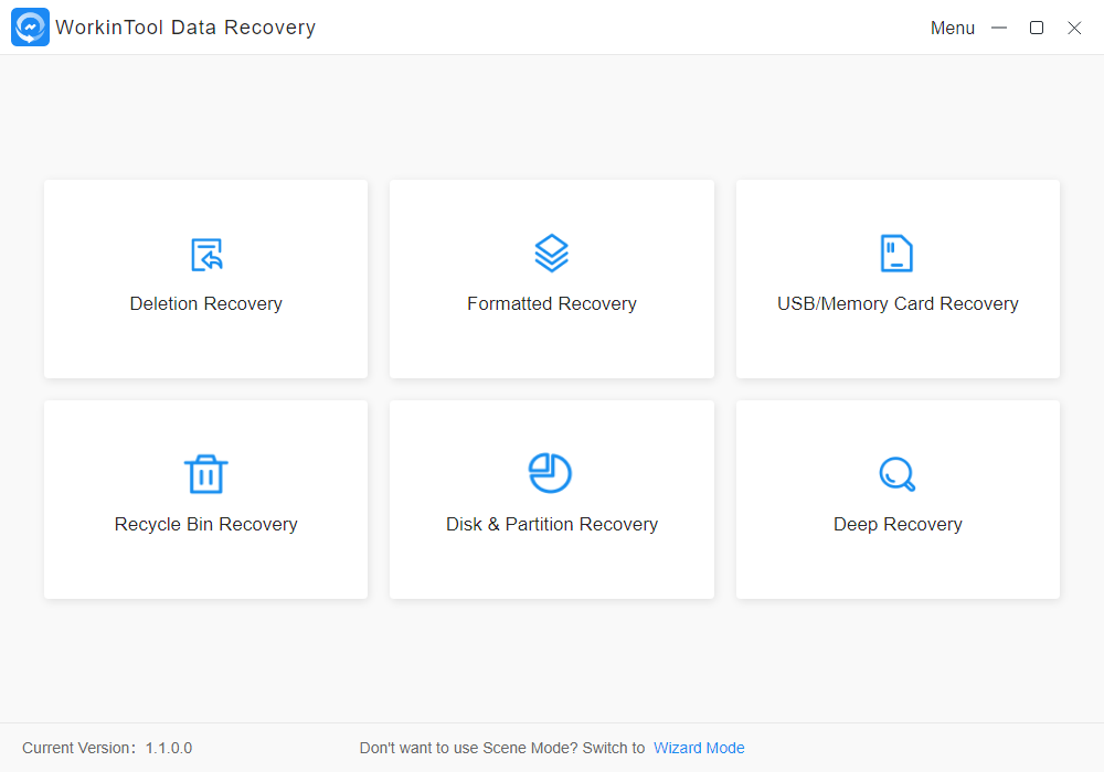 Krok 1: Otevřete WorkinTool Data Recovery a vyberte možnost pro obnovu.