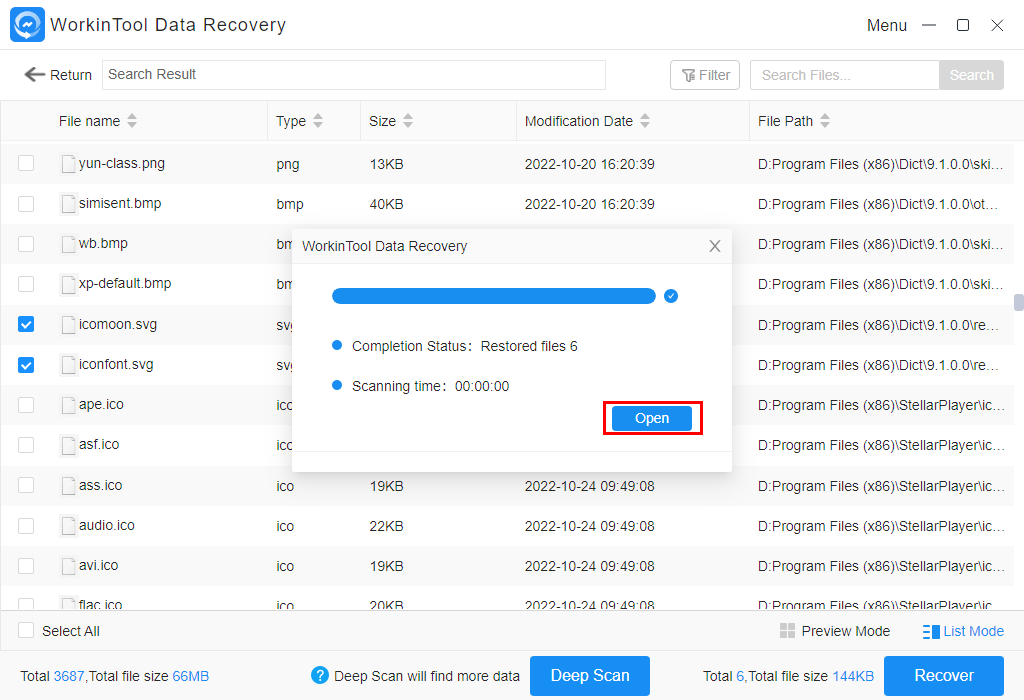Krok 5: Klepněte na možnost Open pro otevření složky, kam se vám uložily veškeré obnovené fotografie.
