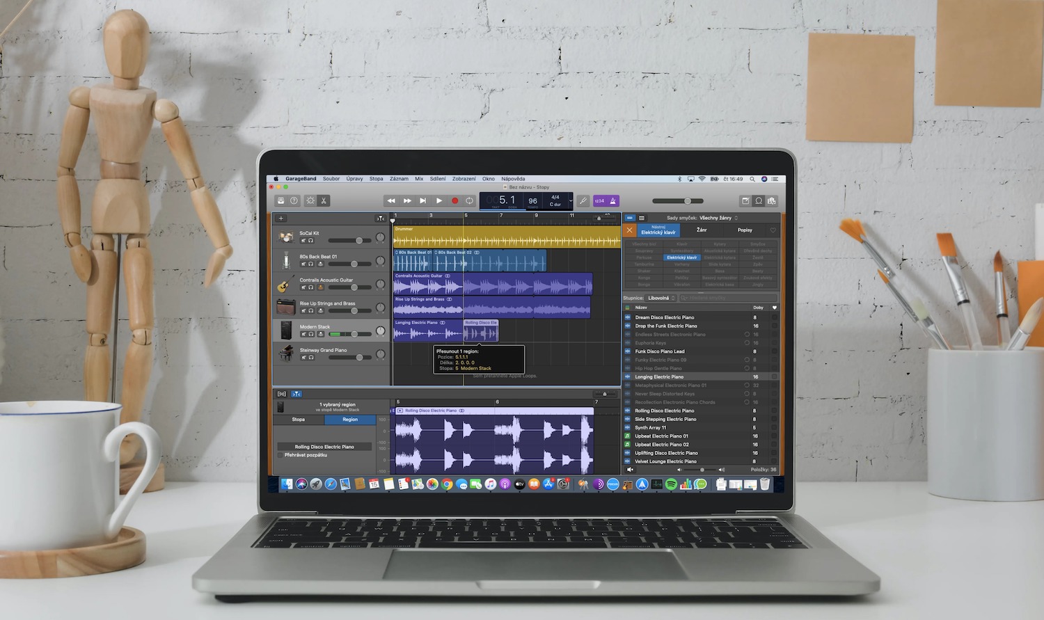 Podobně jako iMovie se nabízí ještě jeden nástroj – GarageBand – který se soustředí na práci se zvukem. Prakticky se jedná o plně vybavené hudební studio, které máte k dispozici na vašich zařízeních Apple. V rámci aplikace se nabízí rozsáhlá knihovna softwarových hudebních nástrojů a různé presety. Spolu s tímto programem se tak můžete rovnou pustit do hraní, případně do nahrávání hudby. Zároveň jde o vhodný software pro nahrávání audia. K Macu stačí jen připojit mikrofon a můžete se pustit do akce.