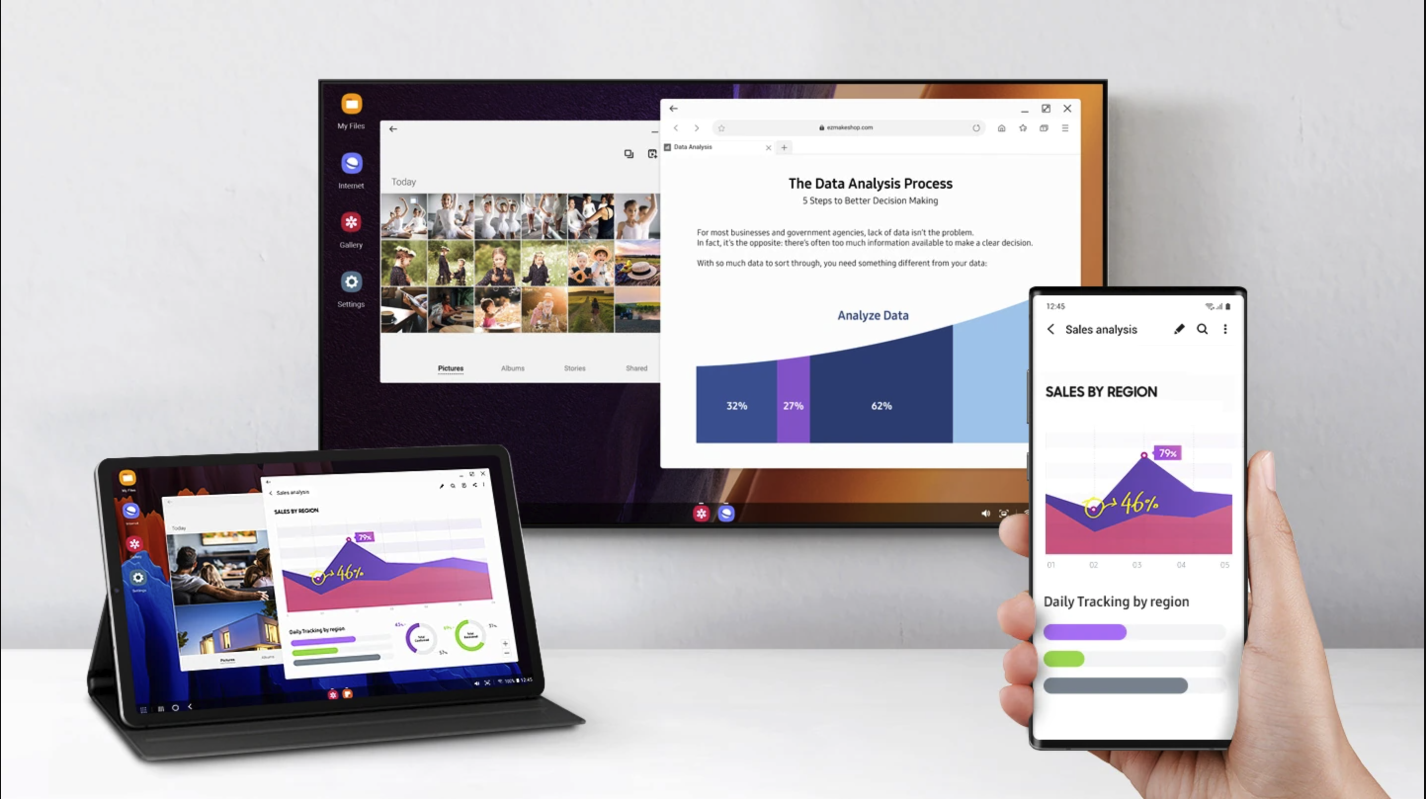 Samsung tomu říká DeX a je evidentní, proč se toho na iOS nedočkáme. Pokud by předchozí bod iPady kanibalizoval, tento by je rovnou zabil, a to dost možná i mnoho Maců. Funkcionalita je totiž taková, že se mobilní systém chová jako ten desktopový, takže zde máte jinou plochu, nabídky v liště, aplikace v oknech atd. Můžete tak dělat na připojeném monitoru či televizi, aniž byste potřebovali počítač, to samozřejmě i s myší a klávesnicí.