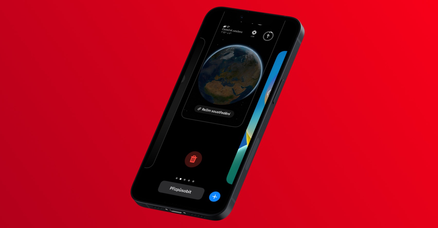 Jak jsem zmínil na předchozí stránce, tak se mezi jednotlivými zamknutými obrazovkami můžete manuálně přepínat. Dobrou zprávou ale je, že si zamknuté obrazovky můžete také propojit s konkrétními režimy soustředění. Pokud propojení provedete, tak se po aktivaci vybraného režimu soustředění automaticky nastaví vybraná zamknutá obrazovka. To se může hodit například u režimu spánku, se kterým si můžete nastavit tmavou zamknutou obrazovku, popřípadě ale samozřejmě i v jiných situacích. Pro propojení se podržením přesuňte do režimu úprav zamknuté obrazovky, kde si následně konkrétní zamknutou obrazovku najděte. Následně ve spodní části klepněte na tlačítko Režim soustředění, který pak klepnutím vyberte.