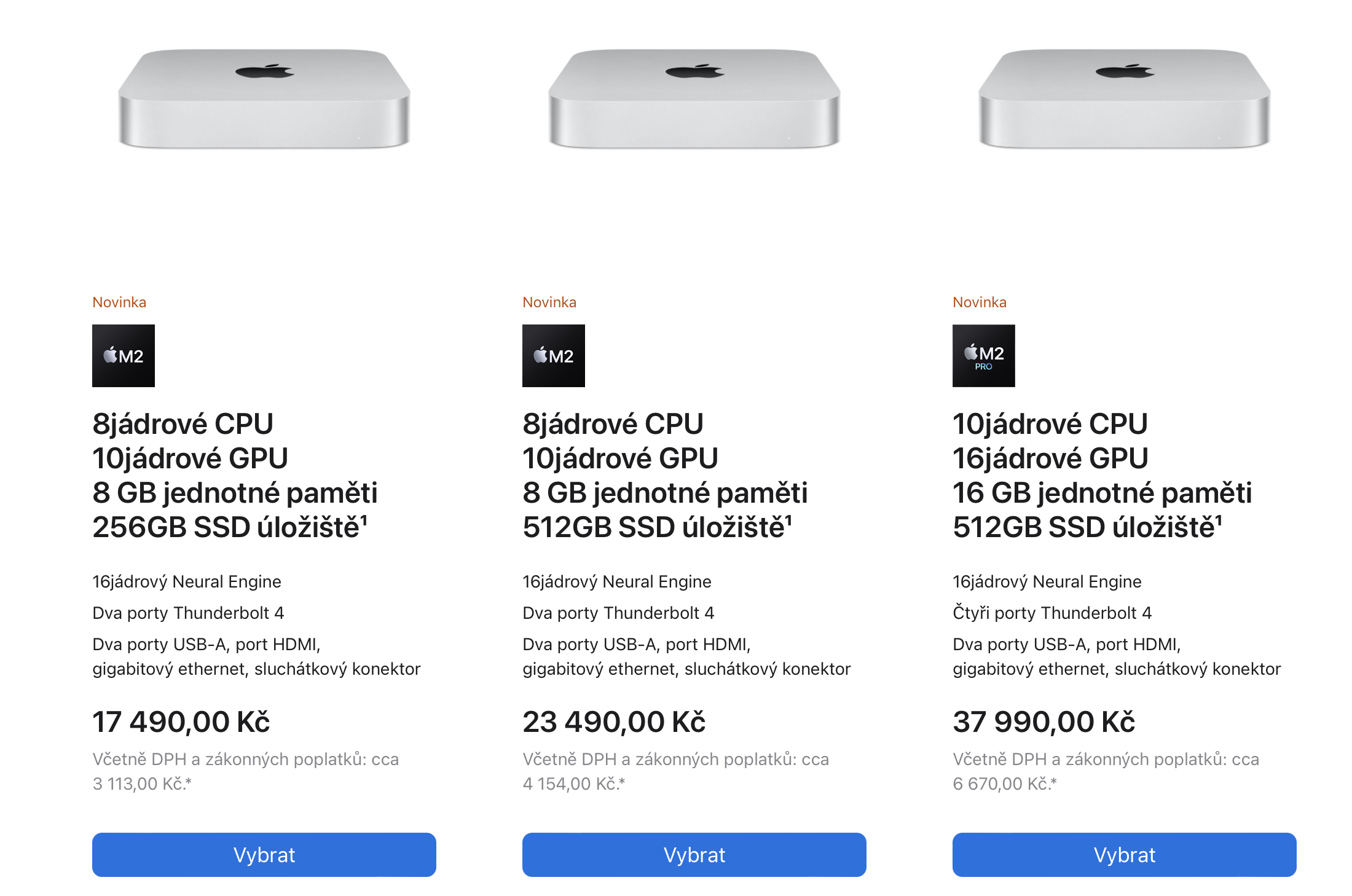 Hned na začátek je důležité říci, že zatímco například iPhony jablečná společnost nedávno zdražila, a to vskutku zásadně, tak u Macu mini se mu podařilo cenu naopak stáhnout dolů. Zatímco předchozí generaci Macu mini s čipem M1 bylo možné v základu pořídit za 21 990 korun, tak nová základní verze s čipem M2 vychází na pouhých 17 490 korun. Je důležité zmínit, že pokud jste studentem, tak tento základní Mac mini s M2 pořídíte jen za 14 990 korun. Jedná se o skutečně bezkonkurenční cenovku a stejný počítač od jiné společnosti byste hledali marně.
