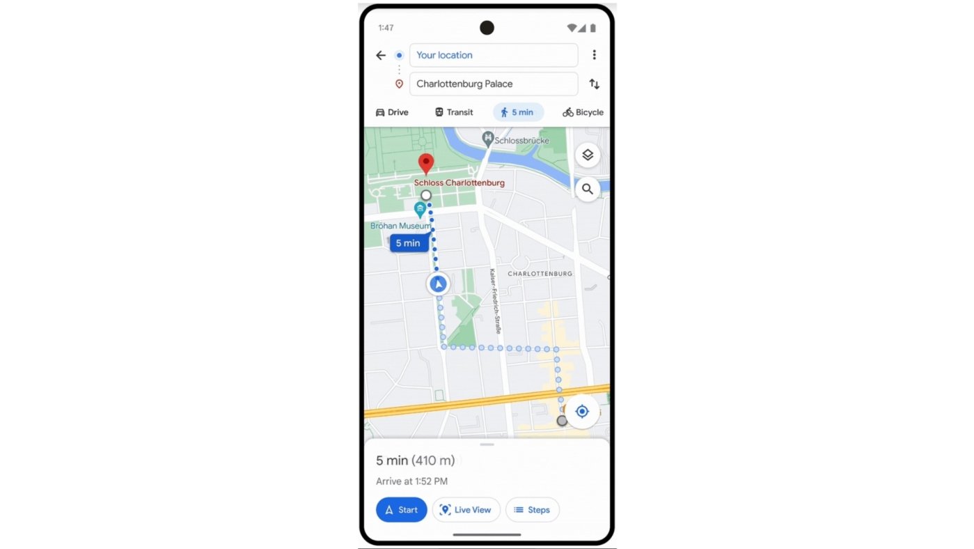 Vcelku podobnou novinkou je i Live View. Ta konkrétně využívá možností umělé inteligence v kombinaci s rozšířenou realitou, díky čemuž dokáže znatelně usnadnit navigaci ve velkých městech, potažmo také na „složitějších“ a neznámých místech, jako jsou například letiště a podobně. V tomto směru aplikace Google Maps přímo mapuje okolí prostřednictvím čočky fotoaparátu a následně dokáže skrze rozšířenou realitu promítnout šipky ukazující směr, případně informovat o důležitých prvcích jako jsou například bankomaty v okolí.