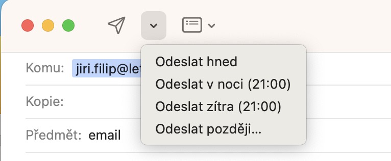 Co se týče nativní aplikace Mail, tak s ní je většina uživatelů spokojených. Pokud ale hledáte nějakého komplexnějšího e-mailového klienta, tak bude nutné sáhnout jinam. Mailu totiž stále chybí některé základní funkce, jako například HTML podpis a další. Každopádně jsme se konečně dočkali alespoň možnosti pro naplánování odeslaní e-mailu. To provedete jednoduše tak, že napíšete nový e-mail, a poté napravo od šipky pro odeslání klepnete na malou šipku, kde už si stačí zvolit, kdy se má e-mail odeslat.