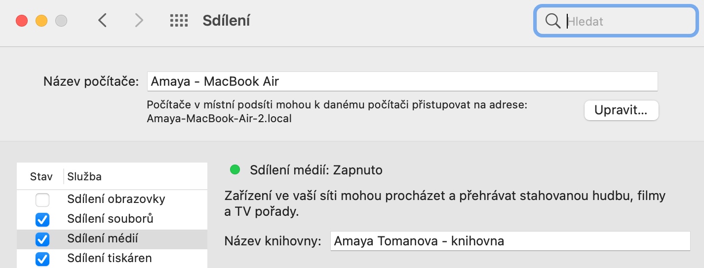 Chcete svému jablečnému počítači propůjčit jiné, originální jméno? Žádný problém. V levém horním rohu klepněte na menu -> Předvolby systému -> Sdílení, kde do textového pole v horní části okna stačí pak už jen zadat nový název pro váš počítač.