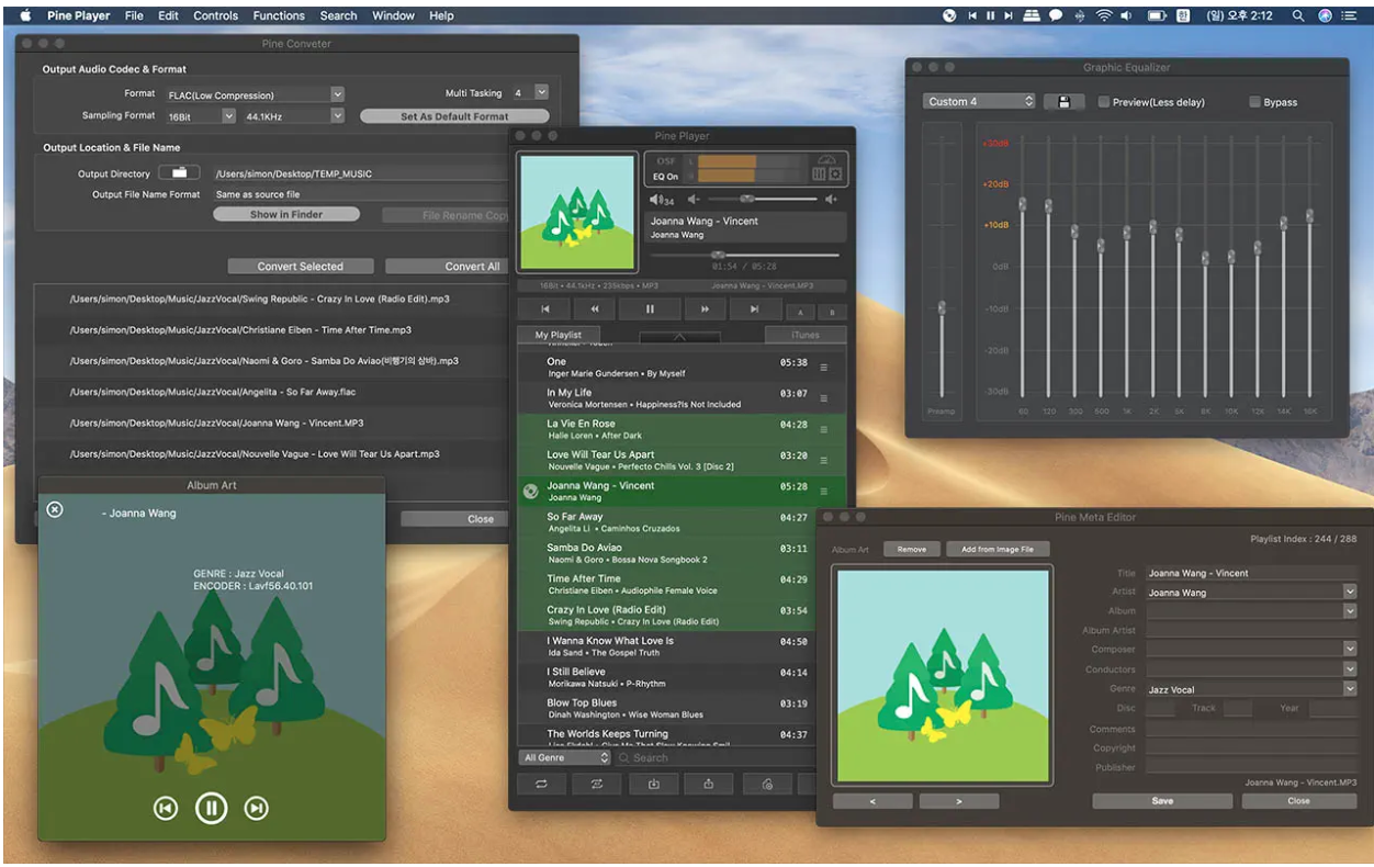 Pines Player je povedený hudební přehrávač pro Mac, který nabízí podporu formátů jako MP3, FLAC, APE, AAC, M4A, WAV, AIFF, OGG, WMA, DSD, SACD ISO, OPUS a další. Nabízí možnost sestavení vlastních přizpůsobitelných playlistů, funkci Cross Fade pro nepřerušova né přehrávání, bohaté možnosti přizpůsobení a spoustu dalšího.