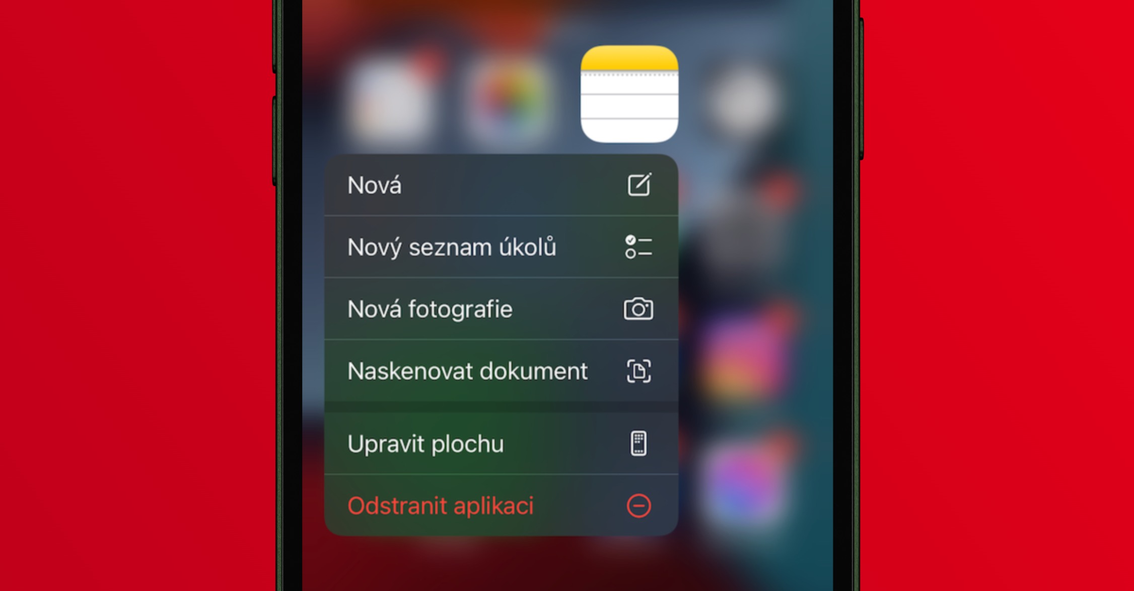 Rozhodnete-li se zapsat nějakou poznámku, tak klasicky přejdete na domovskou stránku, kde otevřete skrze ikonu Poznámky, a poté vytvoříte novou poznámku, popřípadě začnete dopisovat obsah do již vytvořené. Poznámku však z plochy můžete vytvořit jednodušeji a rychleji. Konkrétně stačí, abyste na ikoně aplikace Poznámky podrželi prst. Následně už jen stačí z menu vyberte Nová, popřípadě můžete také vytvořit nový seznam úkolů, anebo novou poznámku z fotografie či naskenovaného dokumentu.