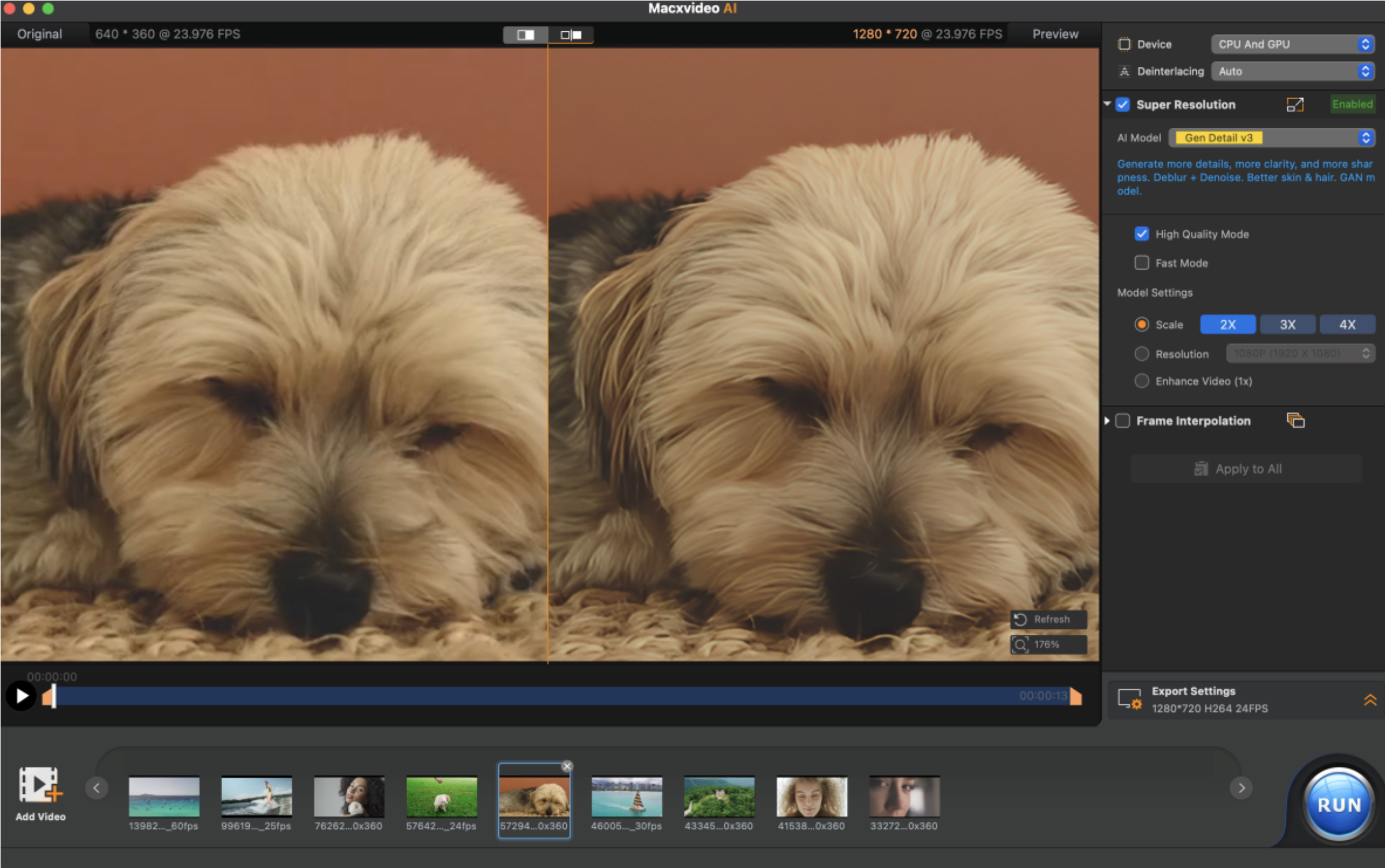 Macxvideo AI je všestranný video konvertor, který využívá umělou inteligenci (AI) k upscalingu, konverzi, kompresi, nahrávání a úpravám videí v rozlišení 4K/8K/HDR. Nabízí několik jedinečných funkcí, jako je možnost vylepšení videí nízké kvality na 1080P, 2K a 4K, zvýšení snímkové frekvence až na 60 fps/120 fps, zvýšení rozlišení obrazu až na 10K, odstranění šumu a rozmazání a mnoho dalšího!