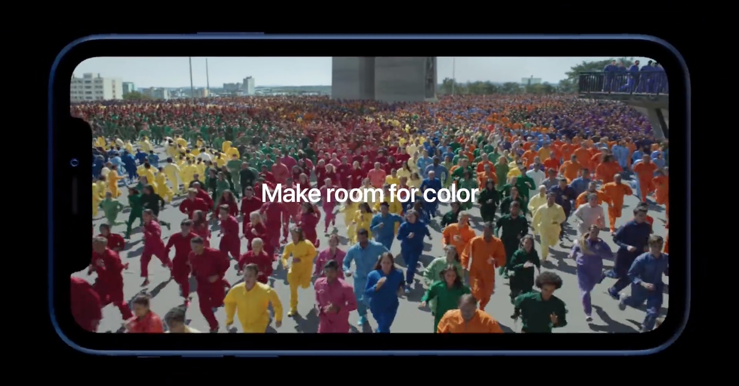 Reklamní spot s názvem Color Flood si klade za úkol vyzdvihnout širokou škálu barevných variant nejlevnějšího modelu z letošní trojice iPhonů. Ve videu tak vidíme zástupy lidí v modré, červené, žluté, bílé, černé a oranžové (korálové), tedy v barvách iPhonu XR.