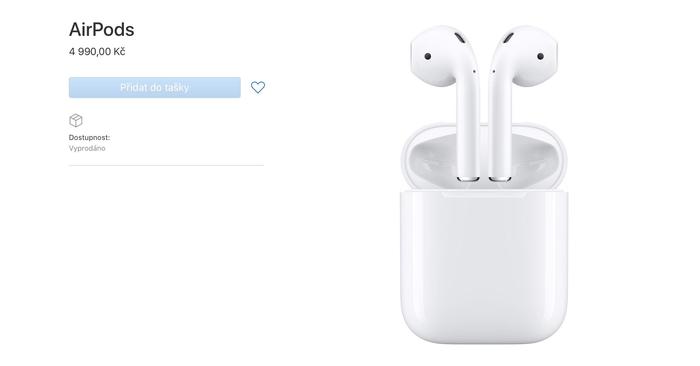 Aktualizace: AirPods jsou opět skladem. Jejich dostupnost je stanovena na jeden pracovní den.