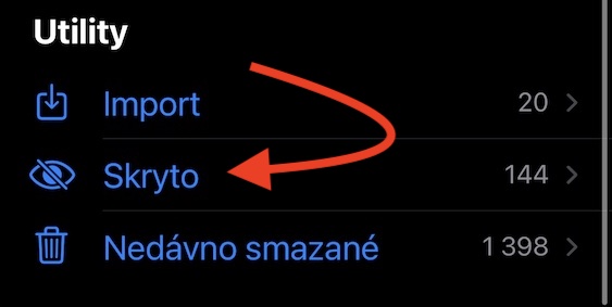 - V případě, že funkci ponecháte aktivní, tak se album Skryto bude stále v sekci Utility zobrazovat.