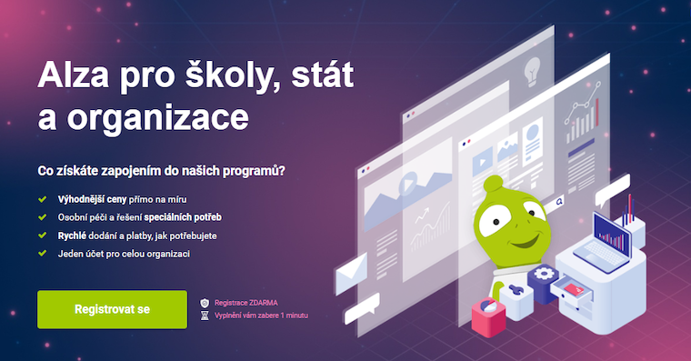 Tisková zpráva: Lídr českého e-commerce Alza.cz rozbíhá nový B2B program Pro školy a stát.Veřejným institucím v něm nabízí výhodné podmínky nákupu, vlastního obchodníka, odloženou splatnost i produkty k vyzkoušení předem. Pro partnerské školy firma navíc připravuje i exkurze, díky nimž studenti exkluzivně nahlédnou do skladu
