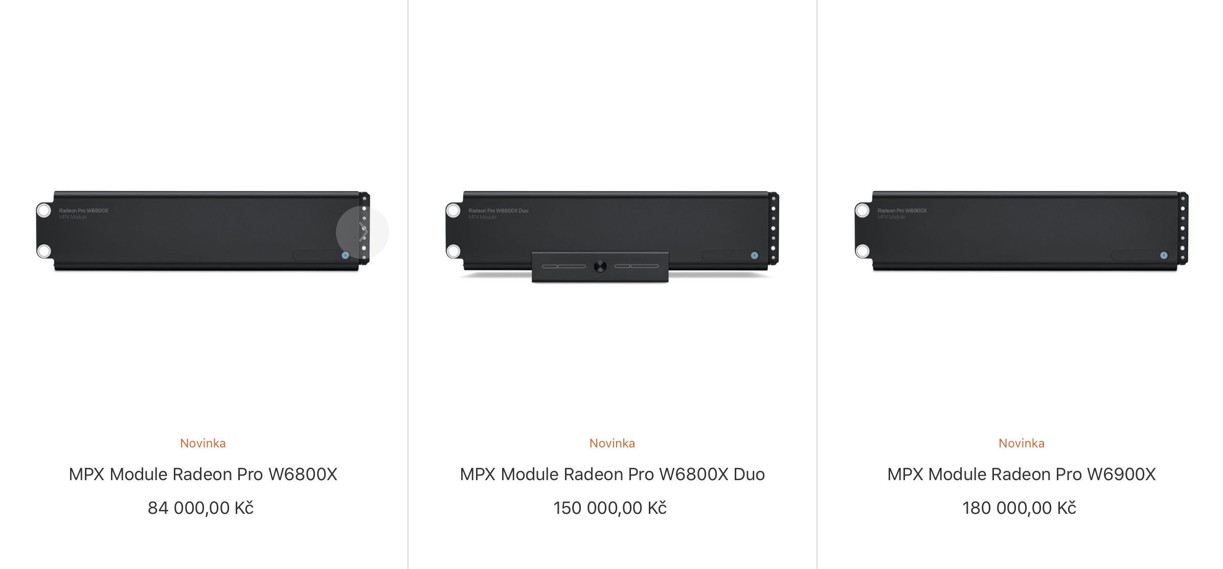 Co když už ale někdo Mac Pro vlastní, ale přesto by potřeboval přikoupit výkonnější grafickou kartu? Přesně z tohoto důvodu Apple začal prodávat jednotlivé karty i zvlášť, čímž míří právě na dosavadní vlastníky počítačů. Konkrétně jsou k dispozici moduly MPX Radeon Pro W6800X za 84 tisíc korun, Radeon Pro W6800X Duo za 150 tisíc korun a Radeon Pro W6900X za 180 tisíc korun. Všechny změny jsou již nyní k dostání v Online Storu a můžete si je tak zakoupit.