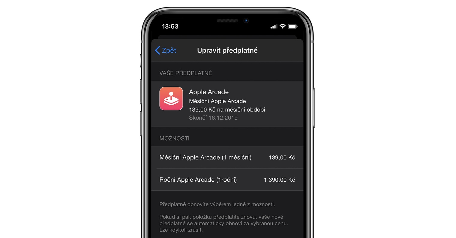 Jestliže vám Apple Arcade vyhovuje a chtěli byste přejít na roční předplatné, pak stačí postupovat následovně:
