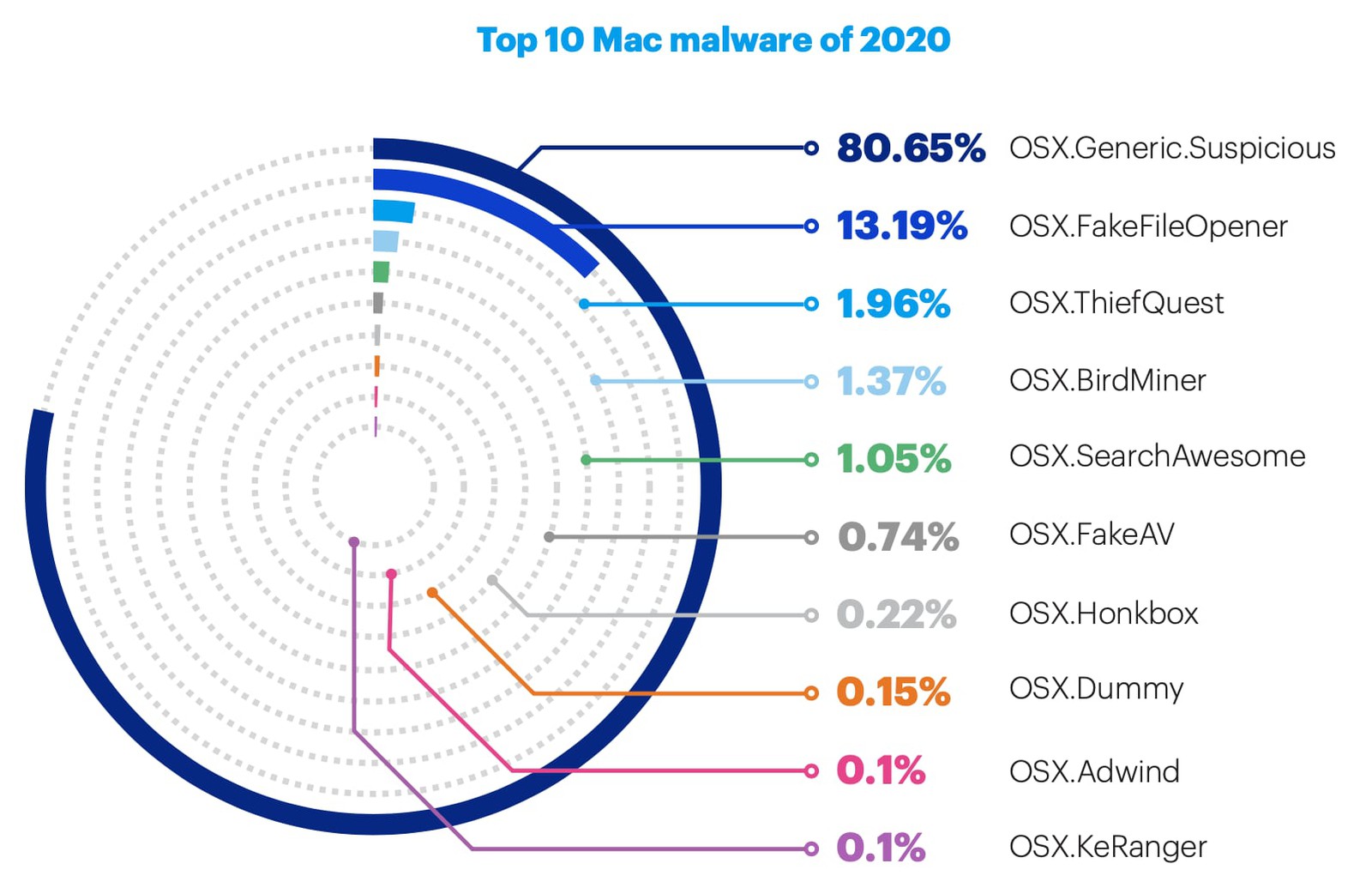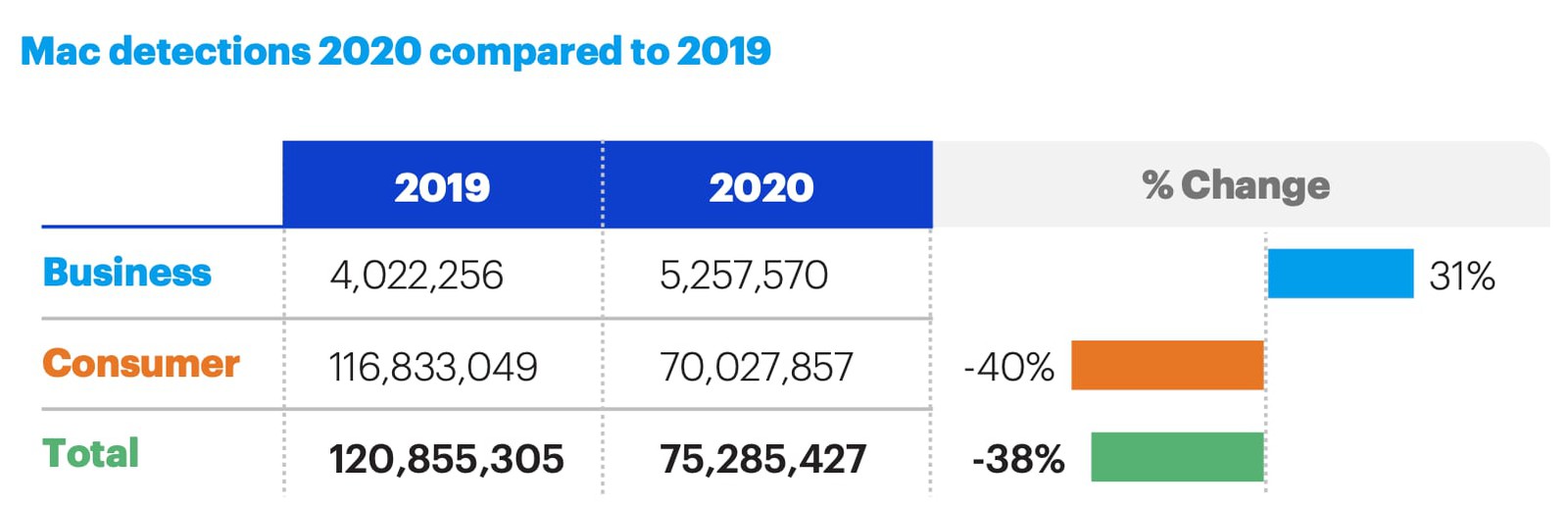 Žádné jablečné zařízení bohužel není bezchybné a jak je především u počítačů zvykem, poměrně snadno se můžete setkat s nějakým virem. Společnost zodpovědná za renomovaný antivirus Malwarebytes dnes sdílela letošní zprávu, ve které se podělila o velice zajímavé informace. Například výskyt malwaru na Macích v roce 2020 klesl o skvělých 38 %. Zatímco v roce 2019 Malwarebytes detekoval celkem 120 855 305 hrozeb, vloni se jednalo „pouze“ o 75 285 427 hrozeb. Hrozby zaměřené přímo na jednotlivce klesly celkově o 40 %.