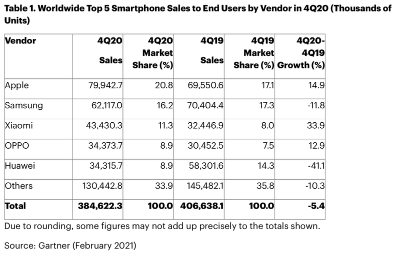 Apple ve čtvrtém kvartálu 2020 překonal Samsung v prodeji telefonů