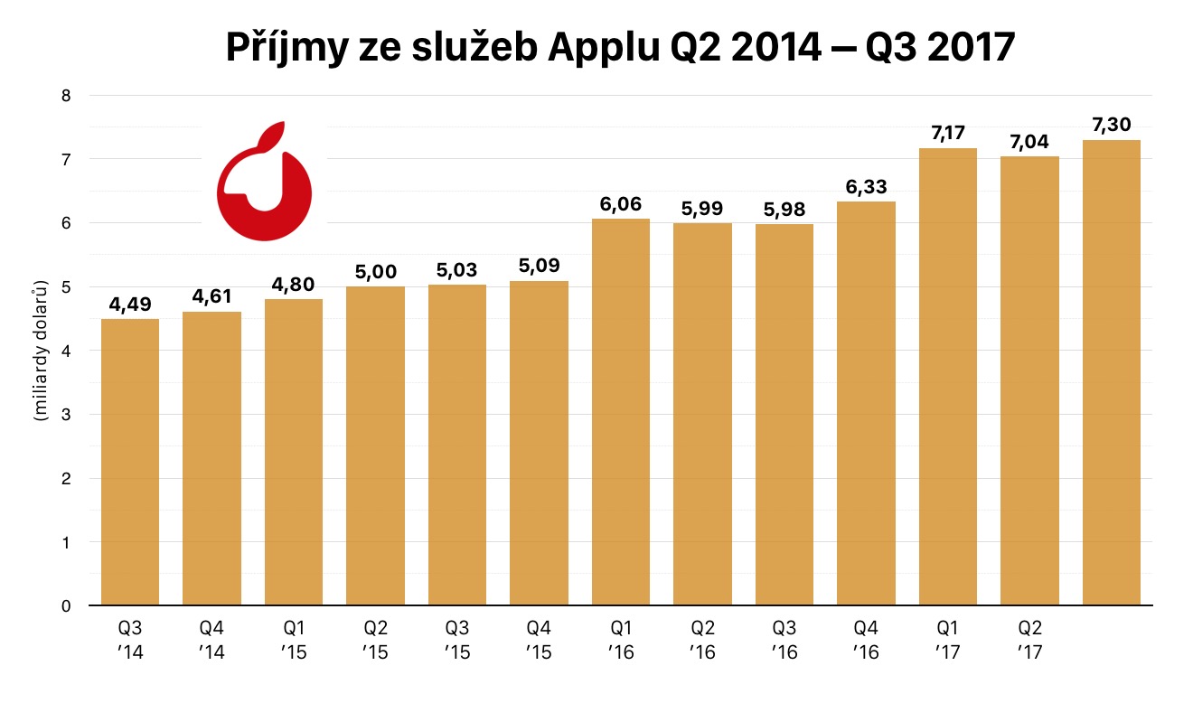 Apple oznámil, že za třetí čtvrtletí fiskálního roku 2017 vykázal příjmy ve výši 45,4 miliardy dolarů při zisku 8,72 miliardy dolarů, což z něj dělá druhý nejúspěšnější třetí kvartál v historii. Významnou zprávou je, že se po dlouhé době dařilo iPadům.