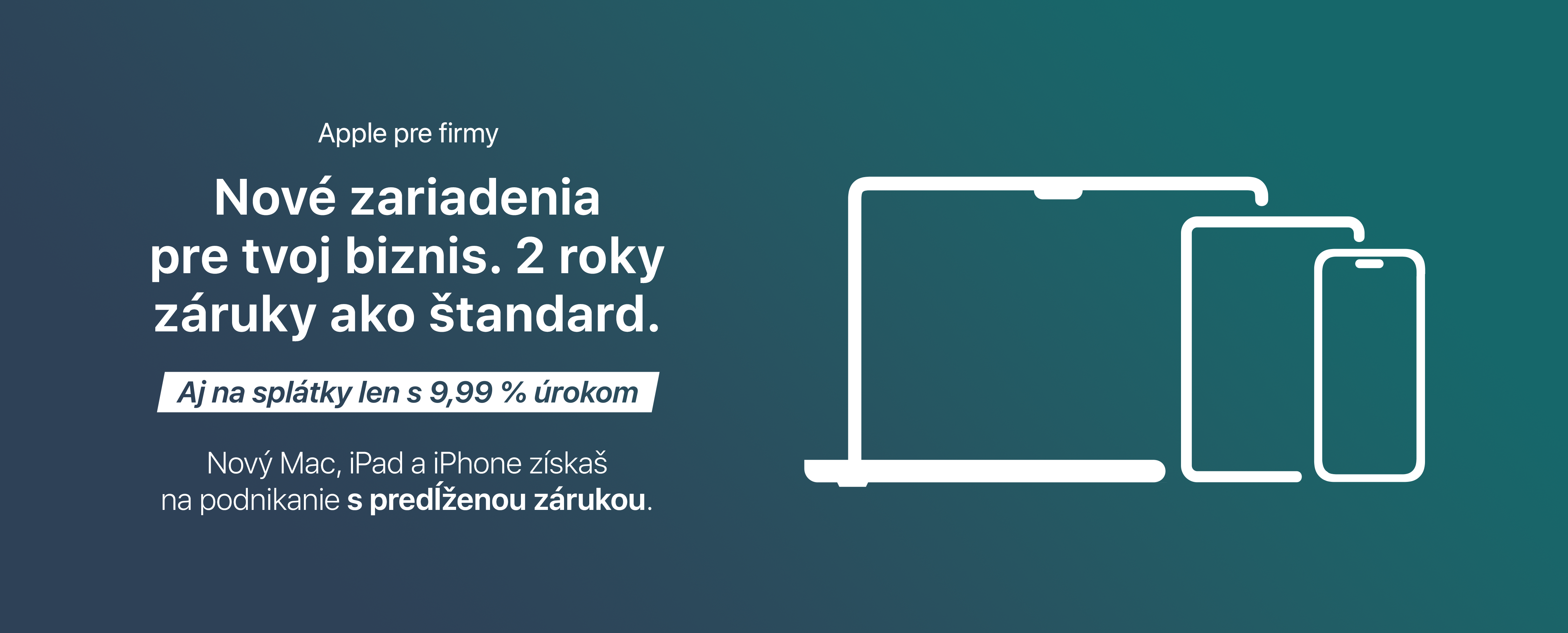 Modernizovat firmu tak nikdy nebylo jednodušší. Vše o výhodách a možnostech financování najdete na istores.sk/appleprefirmy – a možná zjistíte, že to, co váš byznys potřebuje, je jen správně zvolený Mac, iPad nebo iPhone.