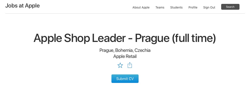 Sám Apple na svých stránkách zveřejnil zcela klíčový inzerát. Hledá se totiž vedoucí pro pražskou retail pobočku, která se zde ale prozatím nenachází. K náboru českých zaměstnanců samozřejmě dochází vcelku pravidelně a nejedná se o nic zvláštního. Nyní jde ale o vůbec první inzerát spadající do kategorie Apple Retail, který souvisí s maloobchodem. Že by se mělo jednat o Apple Store odhalují i samotné požadavky na pracovní pozici. Daná osoba musí mít zkušenosti s řízením a rozvojem prodejny, s plněním různých úkolů, s předáváním informací o jablečných produktech a službách, s motivováním týmu a dalšími. Podmínkou je také jazyková vybavenost, kdy člověk musí umět plynně hovořit v angličtině a češtině. Tuzemští jablíčkáři tak mohou začít pomalu slavit – do Česka míří Apple Store.