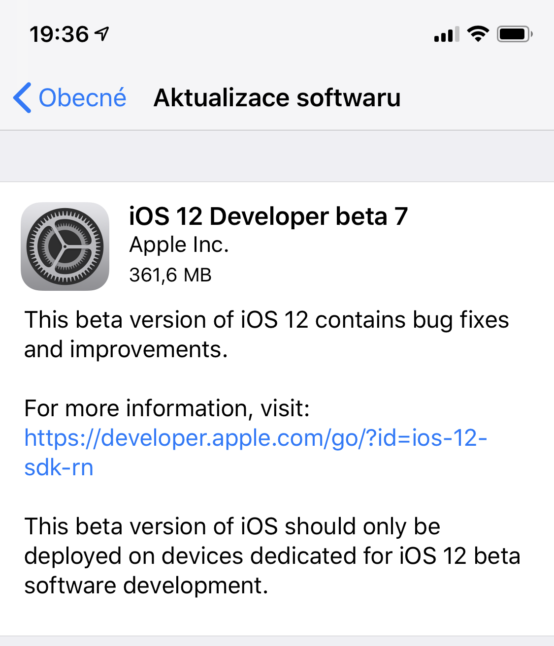 Vývojáři si mohou nové firmwary stáhnout klasicky v Nastavení, u watchOS v aplikaci Watch na iPhonu, v macOS pak v Předvolbách systému. Pakliže na zařízeních ještě nemají nainstalovaný vývojářský profil, mohou vše potřebné (i systémy samotné) stáhnout v Apple Developer Center. iOS 12 beta 7 je v případě iPhonu X velká 361,6 MB. Sedmá beta macOS Mojave pak čitá velikost 3,53 GB.