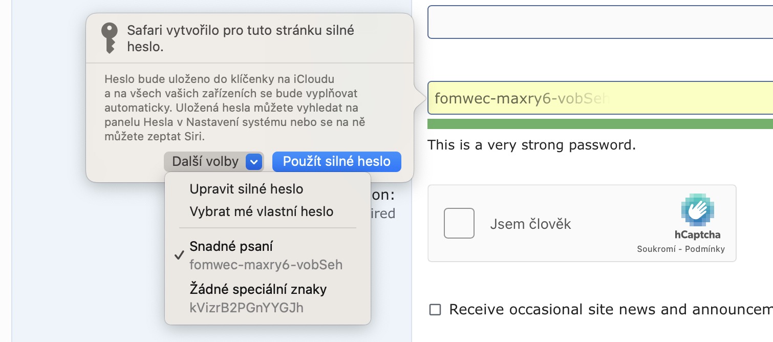 Součástí Macu a dalších Apple zařízení je nativní Klíčenka, do které se mohou ukládat veškeré přihlašovací údaje. Díky tomu si nemusíte pamatovat prakticky žádná přihlašovací jména a hesla a prostě se jednoduše při přihlašování autorizujete pomocí Touch ID. V Safari si při zakládání nového účtu můžete také nechat vygenerovat bezpečné heslo, což přijde vhod. V macOS 13 však při vytváření takového hesla máte k dispozici několik nových možností, například pro snadné psaní či bez speciálních znaků, viz obrázek níže.