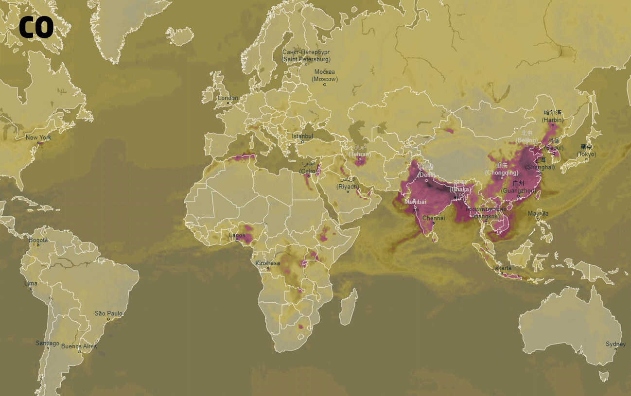 Uživatelé si mohou prohlédnout očekávané koncentrace všech významných znečisťujících látek v ovzduší. Jedná se například o oxid dusičitý (NO2), který produkují hlavně spalovací motory aut. Naopak SO2 a CO produkují hlavně teplárny a elektrárny při spalování fosilních paliv. Polétavý prach (PM10 a PM2.5) potom pochází z celé řady činností, např. ze spalování uhlí, ropy, dřeva, těžby surovin atd. Tyto látky jsou při vyšších koncentracích velmi nebezpečné pro lidské zdraví a je tak důležité je sledovat. Na Ventusky se uživatelé dozví, jaké se očekávají jejich hodnoty v následujících pěti dnech a v jakých oblastech budou koncentrace nejvyšší nebo nejnižší.