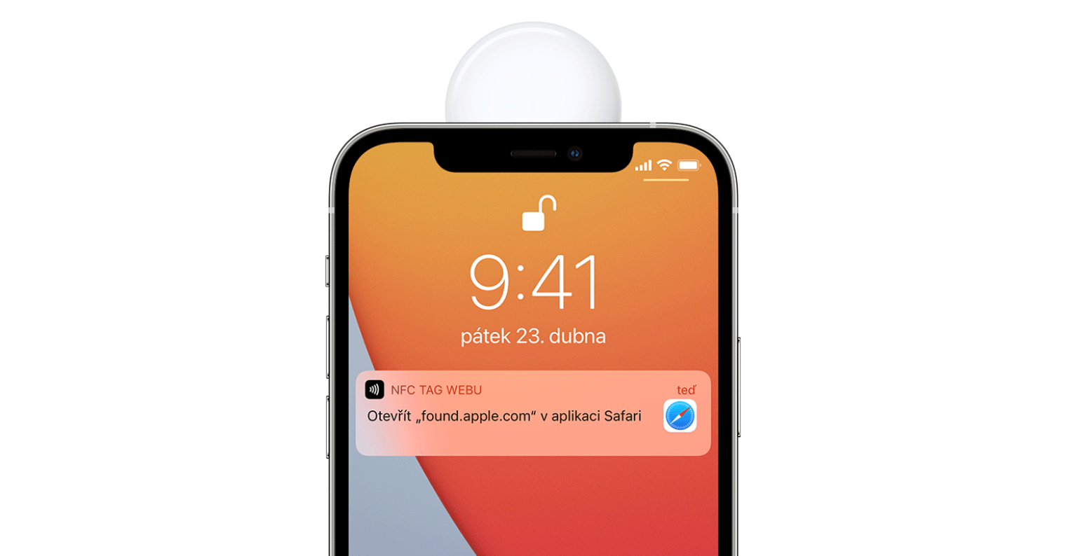 Kdybyste tedy našli AirTag, který je v režimu ztráty, stačí jeho bílou stranu přiložit k horní hraně iPhonu, na kterém se vzápětí díky NFC objeví notifikace. Po jejím otevření se zobrazí infokarta se zmiňovanou zprávou, jež si nastavuje přímo vlastník při zmiňované aktivaci režimu. I kdyby produkt nebyl v režimu ztráty, po nějaké době, kdy je soustavně oddělen od svého majitele, začne vydávat zvuk. Stejný postup navíc funguje i s Android telefony. Jedinou podmínkou je přítomnost NFC.