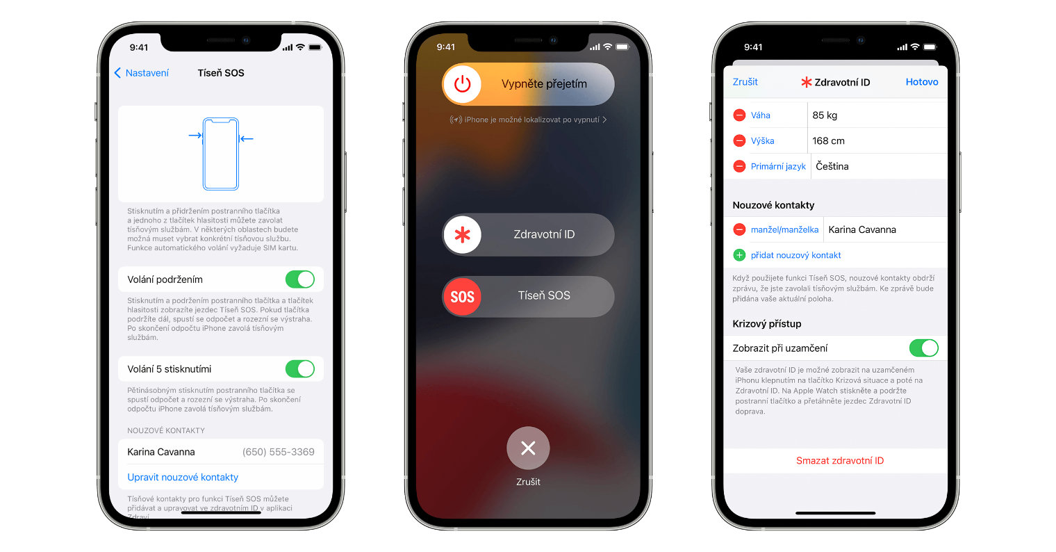 Tíseň SOS lze aktivovat velice jednoduše, což je samozřejmě jejím účelem – abychom si dokázali prakticky okamžitě přivolat pomoc v případech nouze. Na iPhonech 8 a novějších stačí podržet boční tlačítko spolu s jakýmkoliv posuvníkem hlasitosti, čímž se zobrazí nabídka pro vypnutí zařízení, zobrazení Zdravotního ID a aktivace Tísně SOS. Přejetím příslušným posuvníkem pak dochází i k samotné aktivaci. U iPhonů 7 a starších je nutné pětkrát rychle za sebou zmáčknout zapínací tlačítko (po boku, nebo nahoře). Co se děje následovně si popíšeme až za chvíli. Nyní se pojďme ještě zaměřit na to, jak nastavit zmiňované nouzové kontakty.