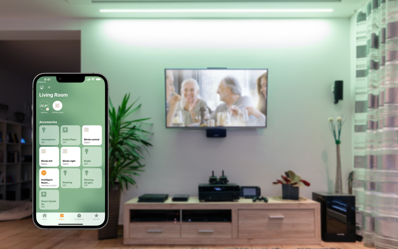- Ten nový film na Netflixu bude super. V obýváku během okamžiku zapnete scénu pro sledování televize. Spustí se pouze tlumené barevné podsvícení nábytku a televize, hlavní svítidla se zhasnou. Žaluzie se zatáhnou a televize se sama zapne.