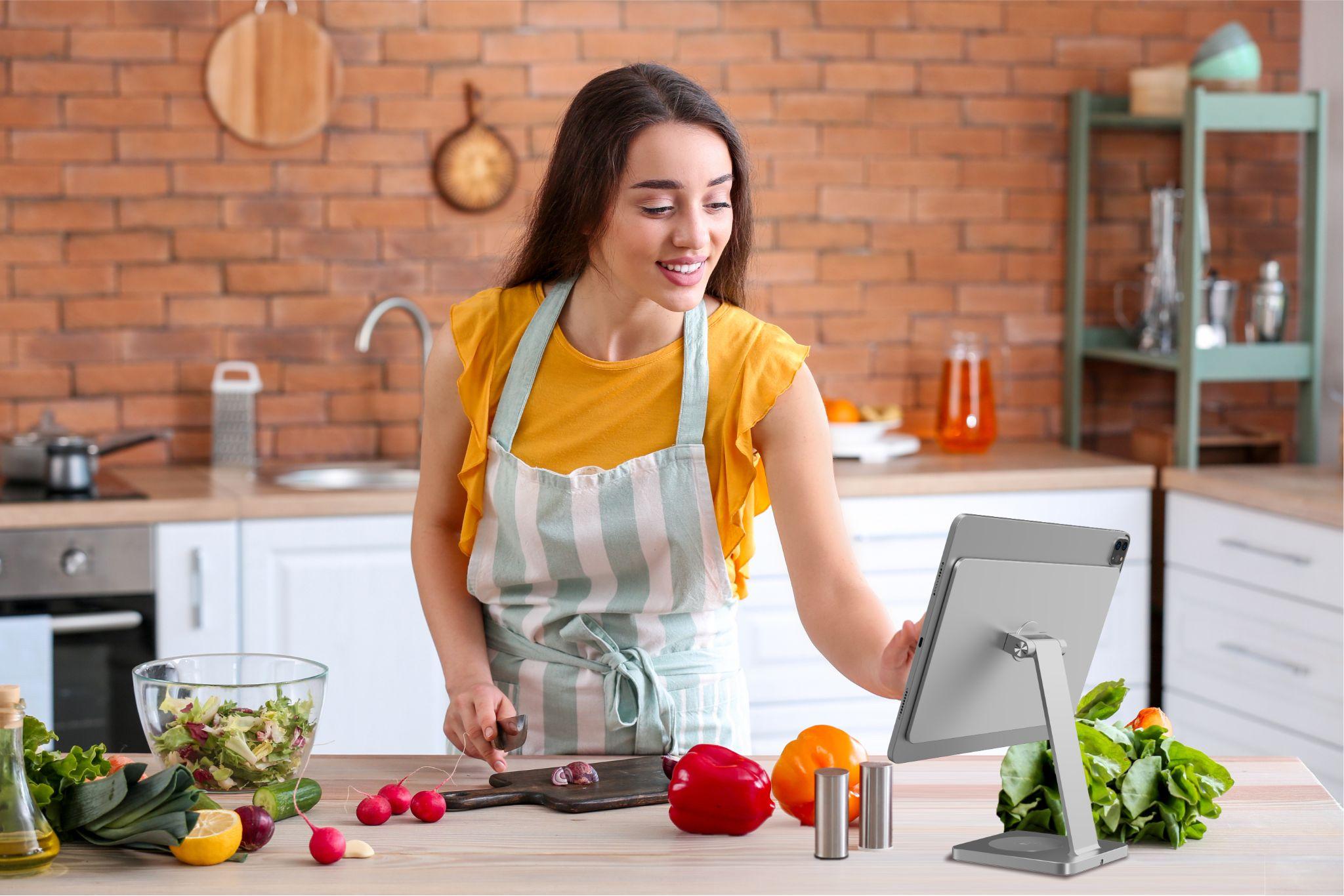 Další novinkou jsou magnetické stojany na iPad. Můžete je využít pro iPad Air 10,9″ 4. generace (2020) a novější, iPad Mini 8,3” 6. generace (2021) a novější, iPad Pro 11” a 12,9” 3. generace (2018) a novější. Zjednodušeně řečeno pro všechny iPady, které již nemají home button. Stojany jsou vyrobeny z kvalitního broušeného hliníku a iPad k nim snadno připojíte pomocí silných magnetů. Jsou skvělý pomocník v kuchyni při prohlížení receptů, v ložnici při sledování filmů, v kanceláři při konferenčních hovorech nebo jako pracovní plocha. Navíc pro iPad Air a pro iPad Pro lze stojan objednat i s integrovanou bezdrátovou nabíječkou kompatibilní s MagSafe na jeho základně.
