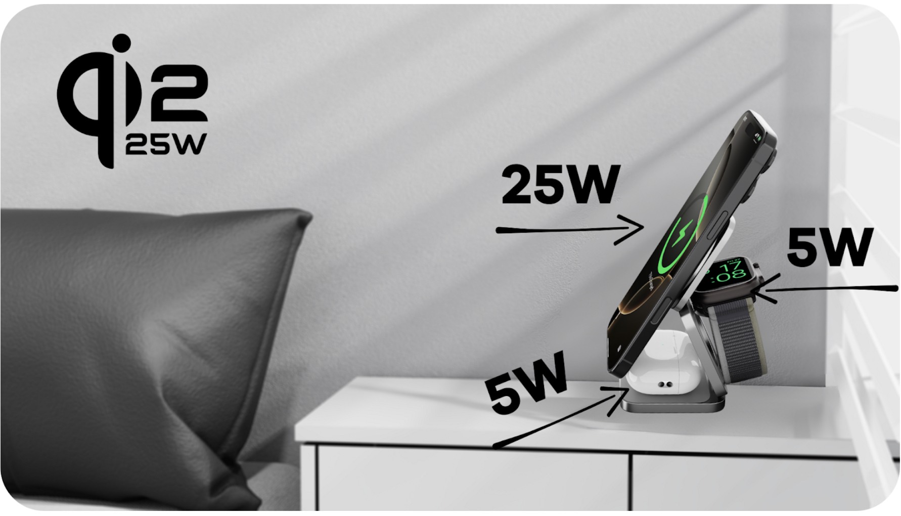 - Jako jediná MagSafe 3v1 nabíječka na českém a slovenském trhu zvládá 25 W nabíjení iPhonu