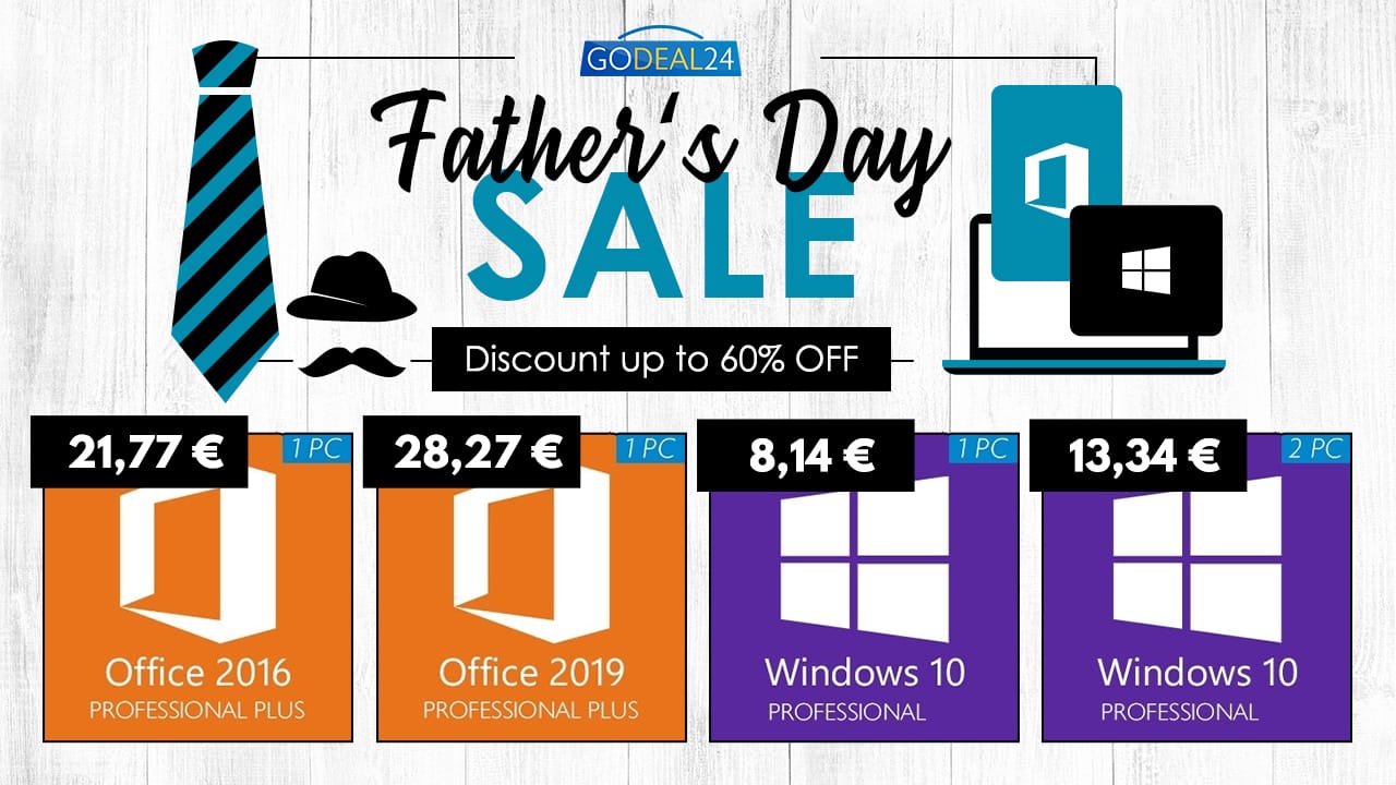 Komerční sdělení: Mezinárodní den otců se oslavuje 20. června, což letos připadá na neděli. Pokud ještě nyní sháníte vhodný dárek pro vašeho otce, možná vám v tomto směru dokáže pomoci internetový obchod Godeal24. Ten totiž při příležitosti této události spustil extrémní slevy Father’s Day Sale, díky čemuž si můžete přijít na originální Windows 10 či MS Office za bezkonkurenční ceny. Jedná se o unikátní příležitost, při které můžete ušetřit kolem 60 % z celkové ceny.