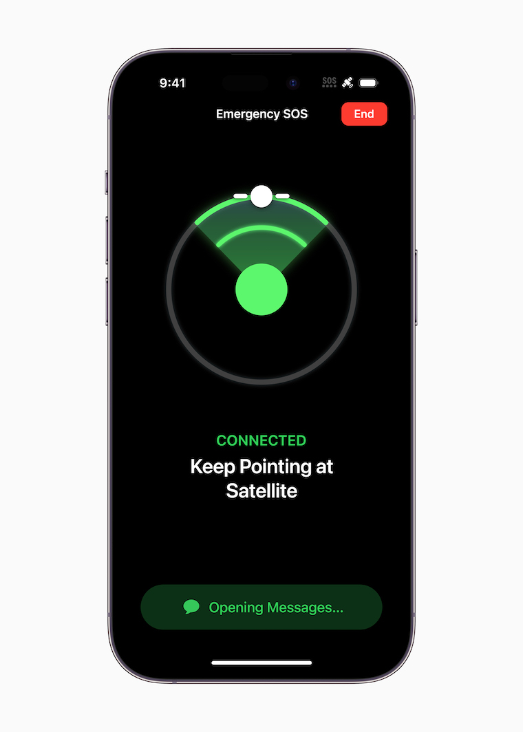 Funkce neslouží k telefonování, ale pouze k odesílání nouzových SOS zpráv. Nevyřídíte si skrze ni ani milostnou korespondenci nebo dotaz, co bude k večeři až dorazíte domů. Aplikace vám ve skutečnosti před odesláním zprávy předloží řadu otázek, na které musíte odpovědět, aby byla vyhodnocena vaše situace, a tyto informace se odešlou záchranné službě, jakmile bude vaše satelitní připojení aktivní. Apple zde vytvořil unikátní kompresní algoritmus, který dělá zprávy třikrát menší proto, aby se co nejvíce zrychlila komunikace. Uvádí, že pokud máte jasný výhled na oblohu, měla by být zpráva odeslána do 15 sekund, pokud vám ale ve výhledu něco brání, může to trvat i několik minut.