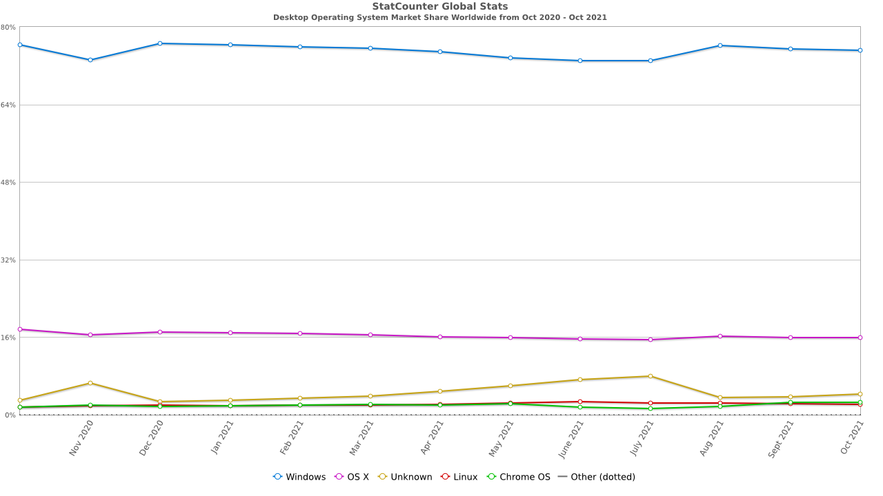 Největším protivníkem gamingu na macOS se zdá být spíše cena v kombinaci s operačním systémem. Jelikož jsou Macy obecně dražší než konkurenční počítače s Windowsem, tak je samozřejmě nekupuje tolik lidí. Podle současných dat připadá na Windows 75,18 % všech desktopových uživatelů, zatímco na macOS se spoléhá jen 15,89 %. V závěru je ještě vhodné uvést Linux, jehož zastoupení činí 2,15 %. Při pohledu na daná čísla prakticky dostáváme odpověď na naši původní otázku. Vývojářům se zkrátka nevyplatí připravovat a plně optimalizovat jejich hry pro jablečnou platformu, jelikož se na ni nachází podstatně menší část uživatelů, kteří se navíc v drtivě většině případů o gaming ani nemusí zajímat. Aneb Mac je zkrátka stroj na práci.