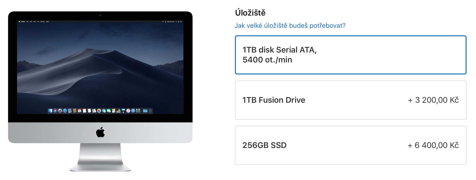 Za svých 34 tisíc korun dostanete 21,5″ iMac, jehož displej disponuje pouze Full HD rozlišením (oproti ostatním 4K a 5K variantám). To by se nejspíše dalo omluvit s tím, že jde o nejlevnější model, u kterého se prostě nějaké kompromisy objeví (byť cenovka příliš levně nepůsobí). Co se však omluvit nedá, je přítomnost klasického plotnového disku.