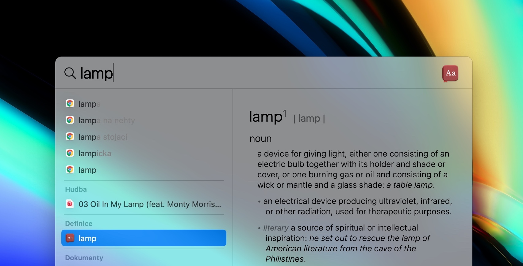 V rámci operačního systému macOS funguje nativní aplikace Slovník, která dokáže poskytnout informace o jednotlivých slovech. Konkrétně tak informuje například o slovním druhu, výslovnosti a významu, případně se nabízí i tezaurus odkazující na synonyma a antonyma. Tuto aplikaci můžeme samozřejmě používat i u nás, avšak má to menší háček. Čeština samozřejmě není podporována.