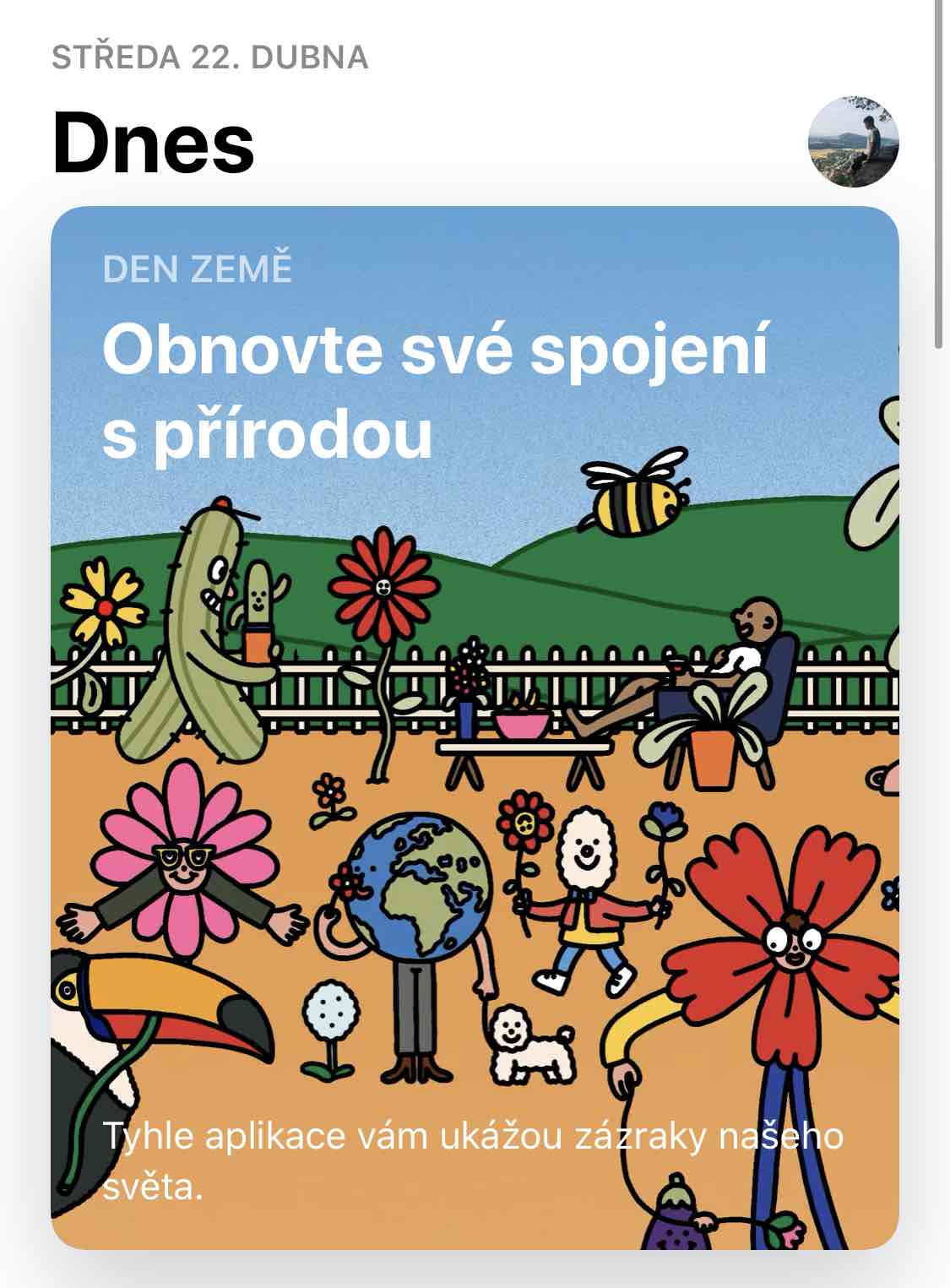 Dnešek je v kalendářích označen jako Den Země, na což samozřejmě nezapomněl ani samotný Apple. Pokud se tedy přesunete do App Storu a vlevo dole klepnete na kategorii Dnes, na první pohled uvidíte nový článek z dílny kalifornské společnosti, jenž nese označení Obnovte své spojení s přírodou. Z důvodu současné situace, kterou způsobila neustále se rozšiřující pandemie nového typu koronaviru, se musíme co možná nejvíce zdržovat doma. Tohle nás do značné míry omezuje a právě při Dnu Země ztrácíme možnost se s přírodou spojit. Apple však vsází na moderní technologie a zmiňované propojení s přírodou vám do značné míry umožní i dnes. Dnešní doba je velice uspěchaná a lidé si častokrát ani nevšimnou krás, které se nacházejí přímo vedle nich. Apple ve svém článku tedy sdílel dvě aplikace, které vám pomohou obnovit vaše spojení s přírodou a navíc vás v období povinné karantény parádně zabaví. Pojďme se na ně tedy společně podívat a v rychlosti si shrnout jejich funkce.