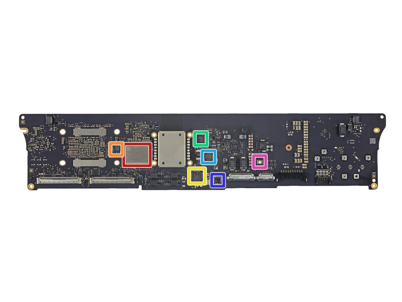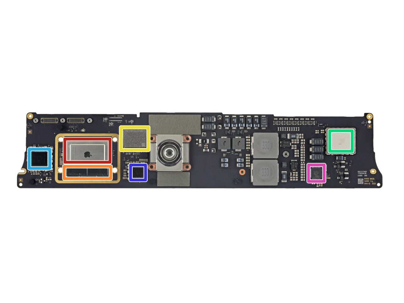 - Červená – Apple APL1102 / 339S00817 64bitový M1 8jádrový SoC (systém na čipu)