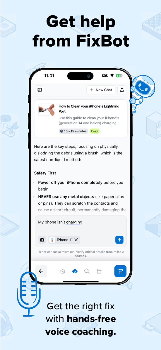 Novinkou je chytrá funkce pro monitorování stavu baterie iPhonu. Aplikace vytváří grafy znázorňující postupnou degradaci a umožňuje tak odhadnout, kdy bude nutná její výměna. Uživatelé tak získají náskok před případnými problémy. Součástí aplikace je i FixBot, asistent založený na umělé inteligenci. Stačí popsat problém textem nebo hlasem a FixBot pomůže s diagnostikou i opravou. Hlasem umí i odpovídat, čili je možné appku používat i při práci oběma rukama. Podporováno je také nahrávání fotografií, což umožňuje přesnější identifikaci vady. Nová aplikace iFixit tak spojuje znalosti komunity s moderními technologiemi a přináší uživatelům jednodušší a dostupnější způsob, jak si své přístroje opravit sami.