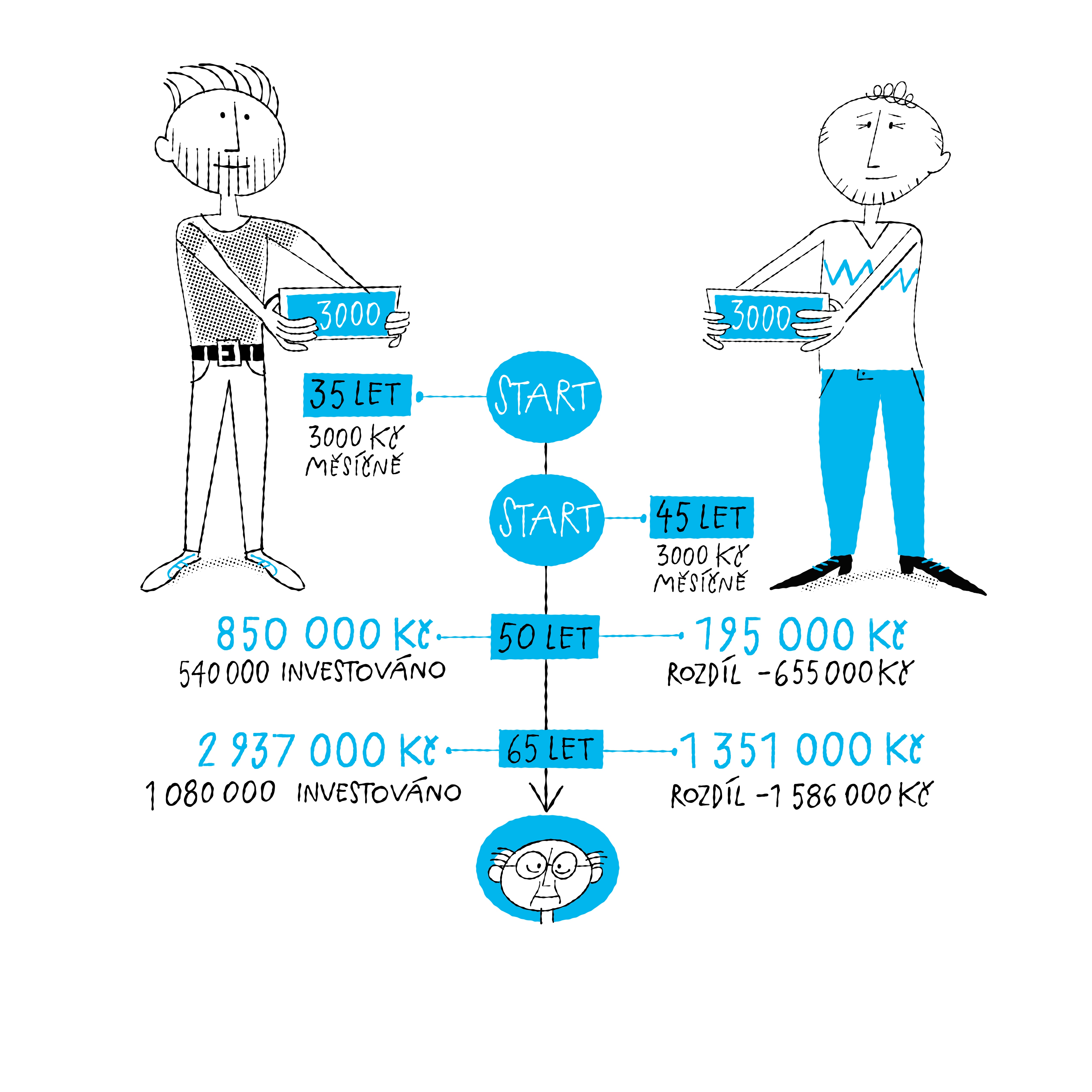 Jak je vidět i z obrázku výše, rozumné a dlouhodobé investování má ale smysl pro každého. Omezení nebo odložení současné spotřeby vám umožní vytvořit si finanční rezervy, které můžete investovat a zajistit si tak, že jejich hodnota postupně poroste.