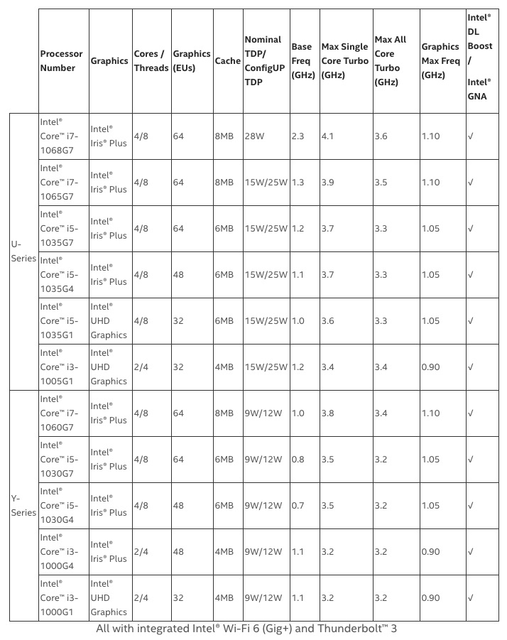 Další pozitivní vlastností nových čipů je integrovaný Thunderbolt 3 řadič. Tudíž každý procesor z 10. generace dokáže nativně spravovat až 4 TB4 porty, osadí-li je výrobce do svého notebooku. Tato novinka by měla výrazně zvýšit rozšířitelnost tohoto portu, z čeho budou nakonec těžit všichni uživatelé. Nově je integrován také řadič pro WiFi 6 (802.11ax). I přes vše výše uvedené se Intelu podařilo výrazně zmenšit velikost celého SoC (v případě 9 a 15W verzí čipů), což by mělo pomoci výrobcům notebooků. Intelu se také podařilo zvýšit výkon v případě využití instrukčních sad AVX-512, což by mělo výrazně pomoci v některých scénářích.