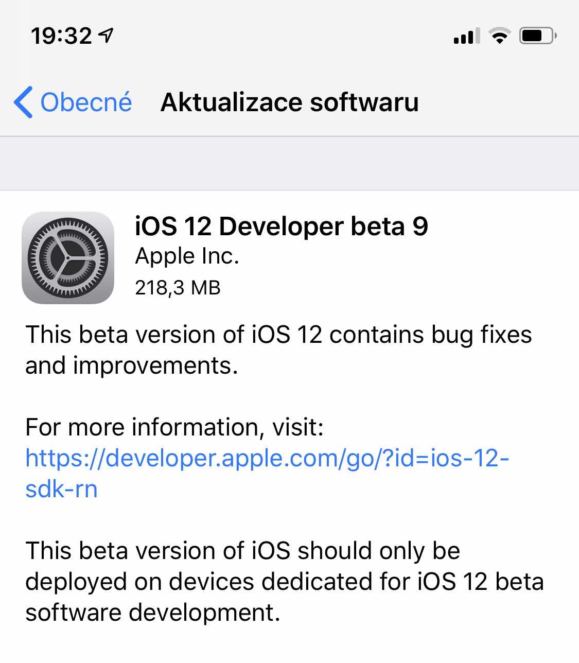 Registrovaní vývojáři si mohou nové systémy stáhnout tradičně v Nastavení, u watchOS v aplikaci Watch na iPhonu, v macOS pak v Předvolbách systému. Pokud na zařízeních ještě nemají nainstalovaný vývojářský profil, mohou vše potřebné (i systémy samotné) stáhnout v Apple Developer Center. iOS 12 beta 9 je v případě iPhonu X velká 218,3 MB. Sedmá beta macOS Mojave pak čitá velikost 3,53 GB.
