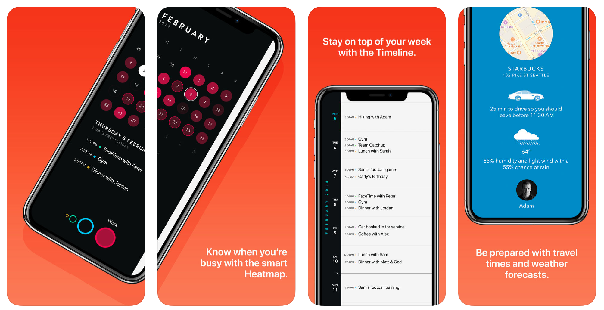 Jednotlivé záznamy lze přehledně rozdělit do kategorií, díky provázanosti s iOS kalendářem a kontakty můžete přes Timepage posílat i RSVP pozvánky. Velmi příjemným bonusem je předpověď počasí, a to jak v podobě přehledu na začátku dne, tak i ve formě rychlých notifikací zhruba patnáct minut před předpokládanou změnou počasí (déšť, sněžení). Notifikace fungují jak v iOS, tak i na Apple Watch, a představují překvapivě užitečnou pomůcku pro dny, kdy se chystáte na nejrůznější schůzky.